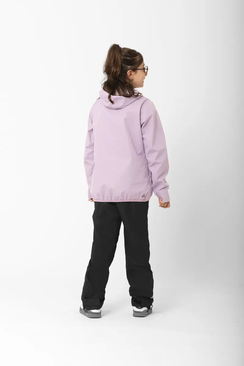 The Jacks 2.5-layer junior pants are designed for young adventurers, combining eco-consciousness with performance. Made from partly recycled 2.5-layer fabric, these pants offer reliable protection with a 15,000 mm water column, taped seams, and a windproof design for excellent waterproofing. With a breathability rating of 15,000 g/m²/24h, they ensure comfort during active play. The zip at the leg ends allows easy adjustments, making them practical to wear over boots. The stretchy fabric provides freedom of movement, and the PFC-free Durable Water Repellent treatment ensures sustainable weather resistance, making them perfect for outdoor adventures in variable conditions.