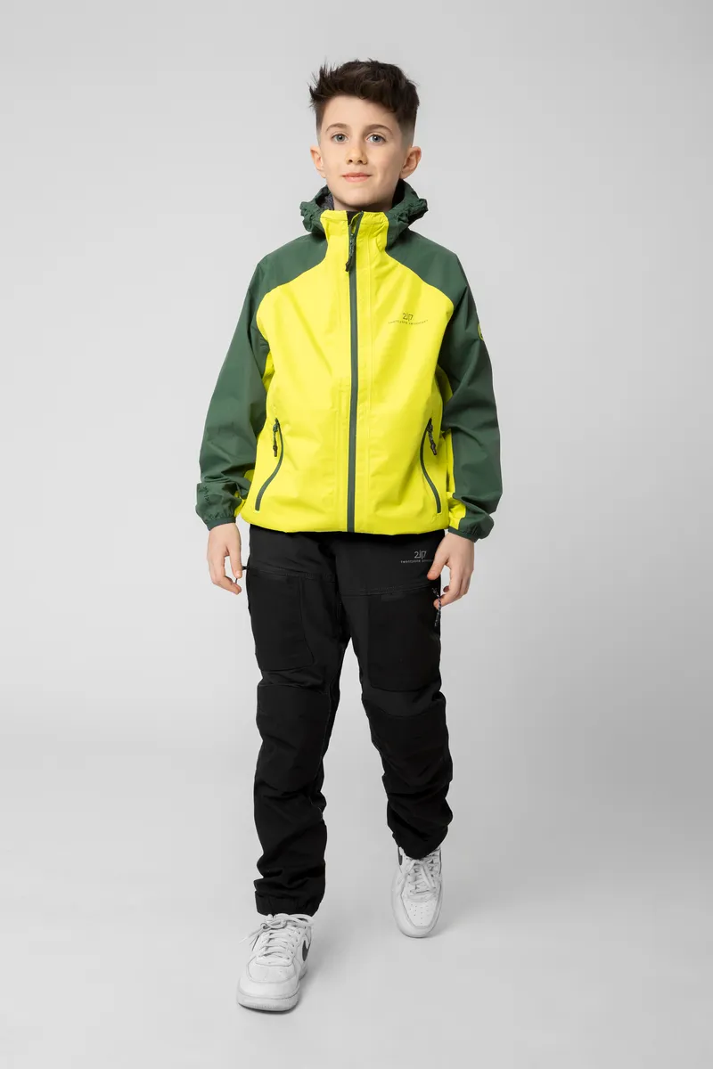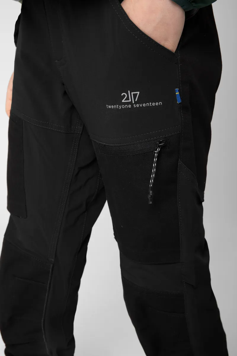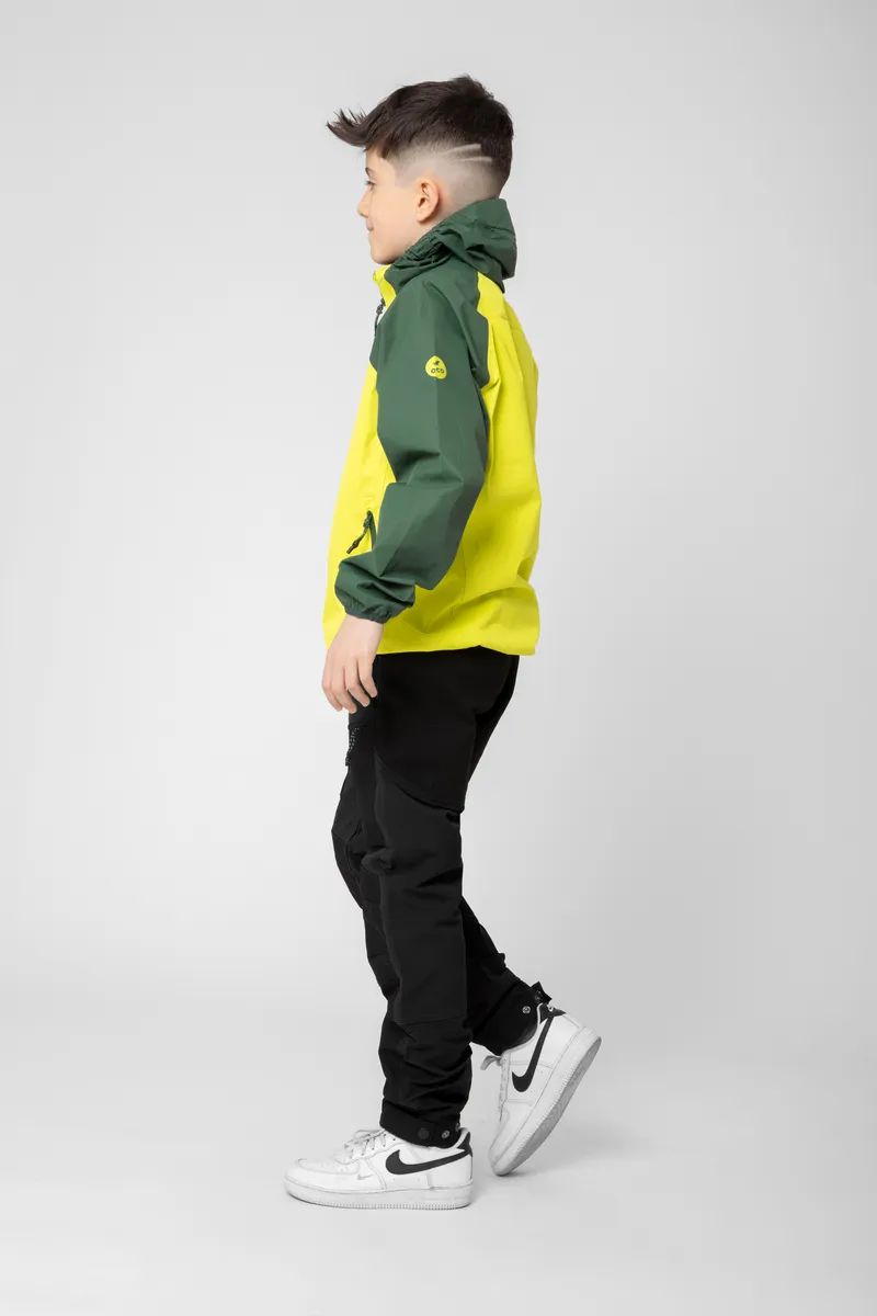 The Stojby pants are designed for children, combining comfort and flexibility with practical features. They feature two side pockets and two leg pockets for convenient storage of small essentials. The adjustable leg ends allow for a customizable fit. The Stojby pants are treated with a PFC-free Durable Water Repellent to help protect against light moisture. Crafted from 65% polyester and 35% cotton for the main fabric, and 92% nylon with 8% elastane for added flexibility, the Stojby pants are perfect for various outdoor activities, providing both durability and comfort for active kids.