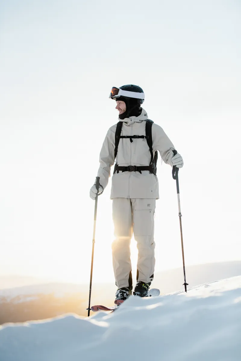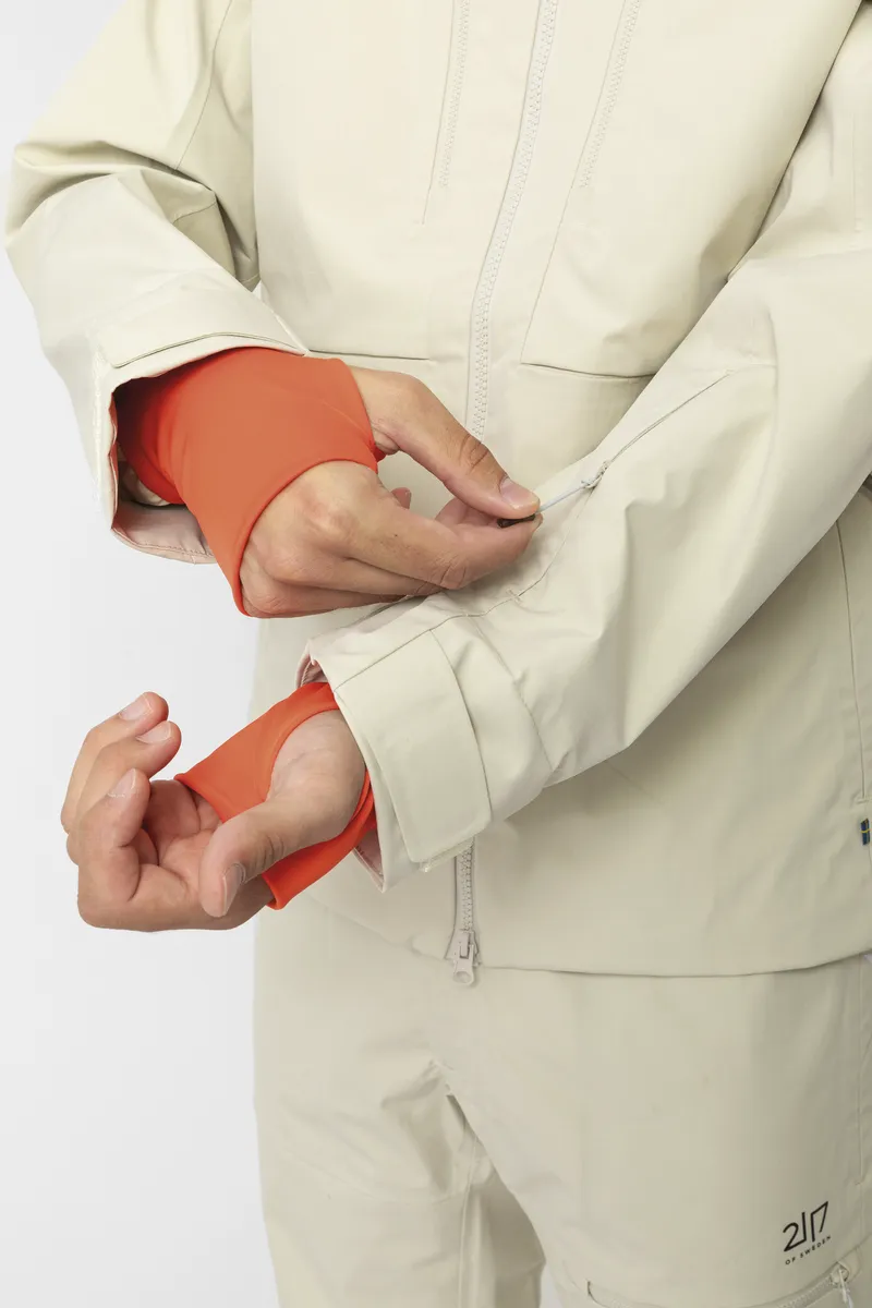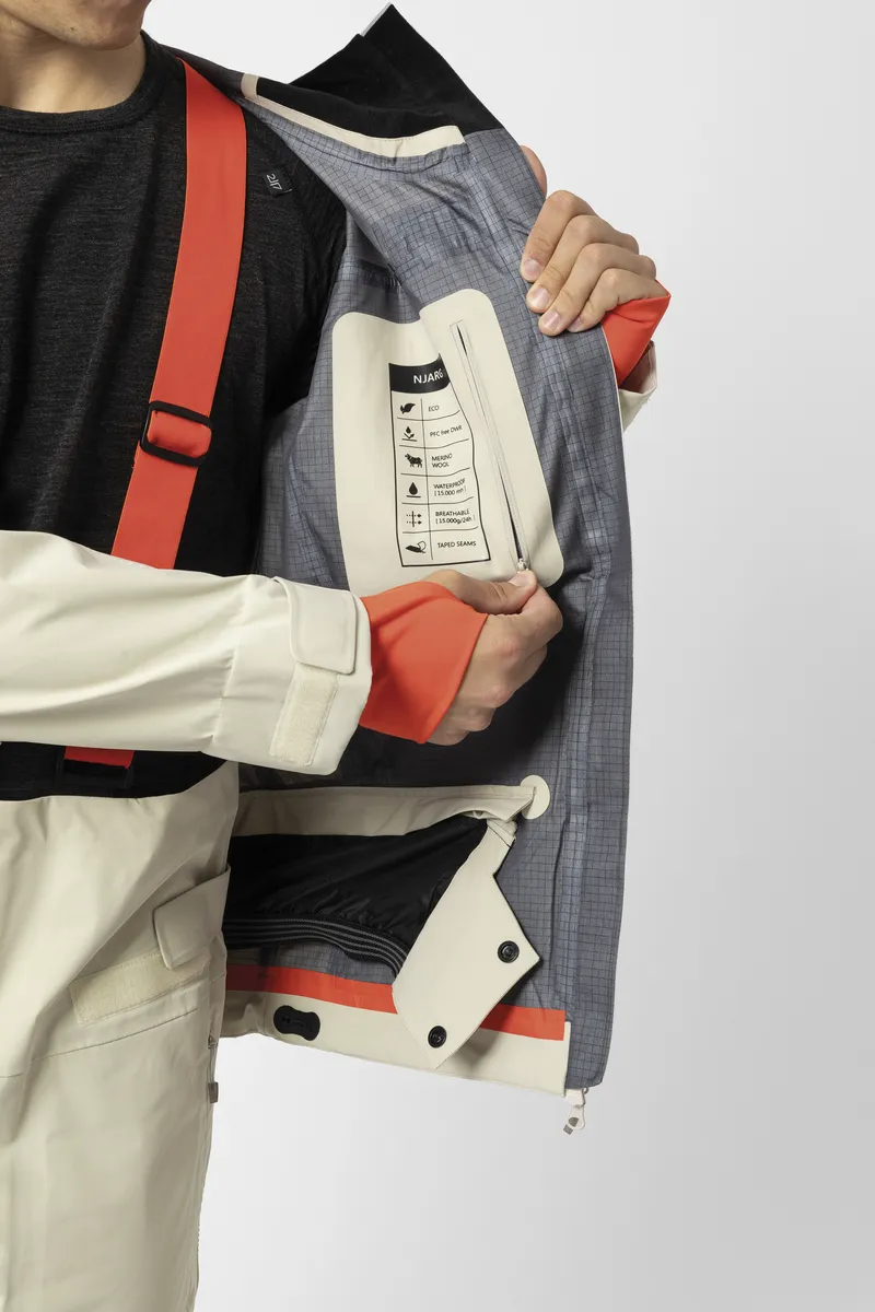 Njarg is a 3-layer shell jacket that combines durability with a soft, cotton-like feel, crafted from partly recycled ripstop fabric. Inside, the Merino wool back and collar, wick moisture, provide breathable comfort, and adds a soft feel against the skin. Njarg features two side pockets, two chest pockets, and a dedicated ski card pocket for convenience. With a waterproofing of 20,000 mm, breathability of 30,000 g/m²/24h, waterproof zippers, elastic cuffs, and taped seams, it ensures comfort and protection against the weather on the slopes. Njarg is equipped with Recco technology, aiding rescue teams in locating individuals in emergency situations like avalanches. Stay regulated with ventilation zippers under the arms and laser cut ventilation holes in the front collar. Adapt to any condition with the removable snow gaiter and customize your fit using the drawstring in the bottom and hood. Pair this jacket with the Ullånger merino base layer, Gasska merino jacket, Laisvall down sweater, or Porjus light padded jacket or vest to adapt effortlessly to varying weather and activities. Elevate your adventures with this versatile and eco-friendly choice.