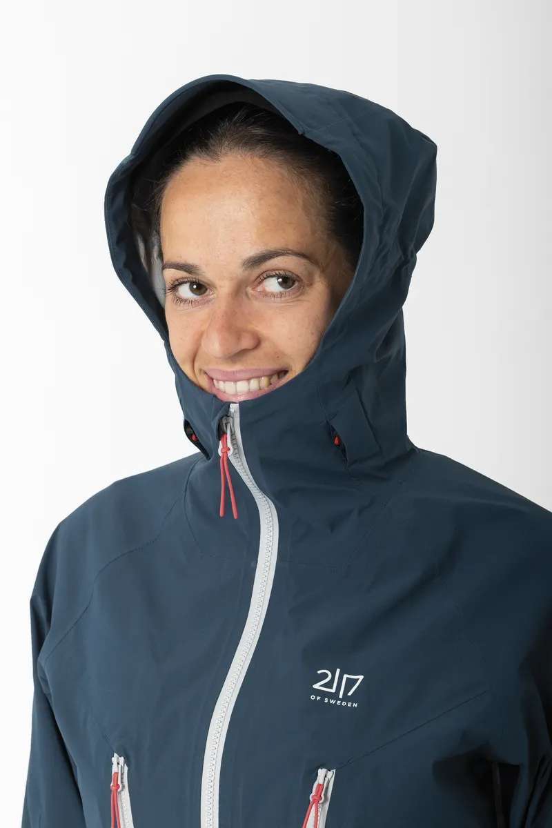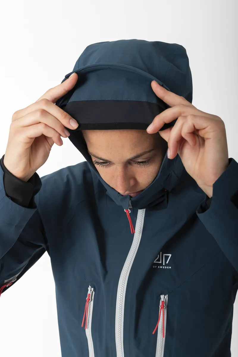 The 2.8 Layer Jacket Nikkala is a technical shell designed for demanding weather conditions and active use. The 2.8 layer construction in ripstop fabric with a matte appearance combines durability with a clean and modern look. Made from 100% Polyester with T8 yarn, it offers reliable performance without compromising on comfort. Equipped with Tritech 15K/15K, the jacket provides waterproof protection up to 15 000 mm and breathability of 15 000 g/m²/24h. Fully taped seams, waterproof zippers, windproof fabric, and stretch properties ensure dependable protection and freedom of movement in changing conditions. Ventilation zippers allow you to easily regulate body temperature during high intensity activities. The jacket features two chest pockets and two inside mesh pockets for secure storage. The adjustable drawstring at the bottom hem and hood provides a personalized fit. Finished with PFC free DWR treatment for water repellency with a lower environmental impact.