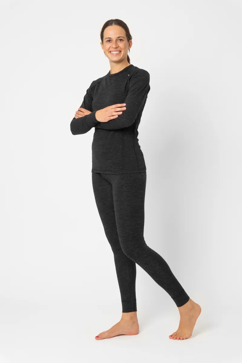 The Pauki base layer is crafted from a blend of 50% mulesing-free merino wool and 50% polyester, combining natural warmth with practical durability. With a weight of 150g/m2 and a fine 19,3-micron merino wool, this base layer offers temperature control and effective moisture management. Merino wool naturally regulates heat and has natural anti-odor properties, ensuring comfort throughout your activities. Blending polyester with merino wool enhances the fabric’s durability, increases its stretch, and speeds up drying times. This combination makes the Pauki base layer more robust and versatile for a range of outdoor activities, from skiing to hiking. The melange effect adds texture to the fabric, while the overall construction ensures reliable performance when layered under outerwear.