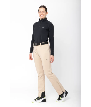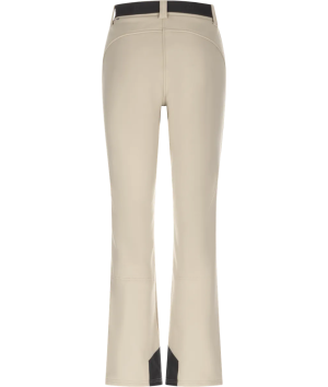 The Solsbo softshell pant is designed for skiing and other cold-weather activities. The outer fabric is made from 82% nylon and 18% elastane, laminated with a fleece backing of 100% polyester for added comfort and warmth. The stretchy nylon construction allows for ease of movement, while the fleece interior adds warmth without additional bulk or insulation. The Tritech membrane provides 10,000 mm waterproofing, 10,000 g/m²/24h breathability, and windproof protection. The PFC-free durable water repellent finish offers extra moisture resistance. Features include a belt with logo at the waist, zippers at the leg ends for easy adjustment over boots, and reinforced panels at the lower legs for durability.