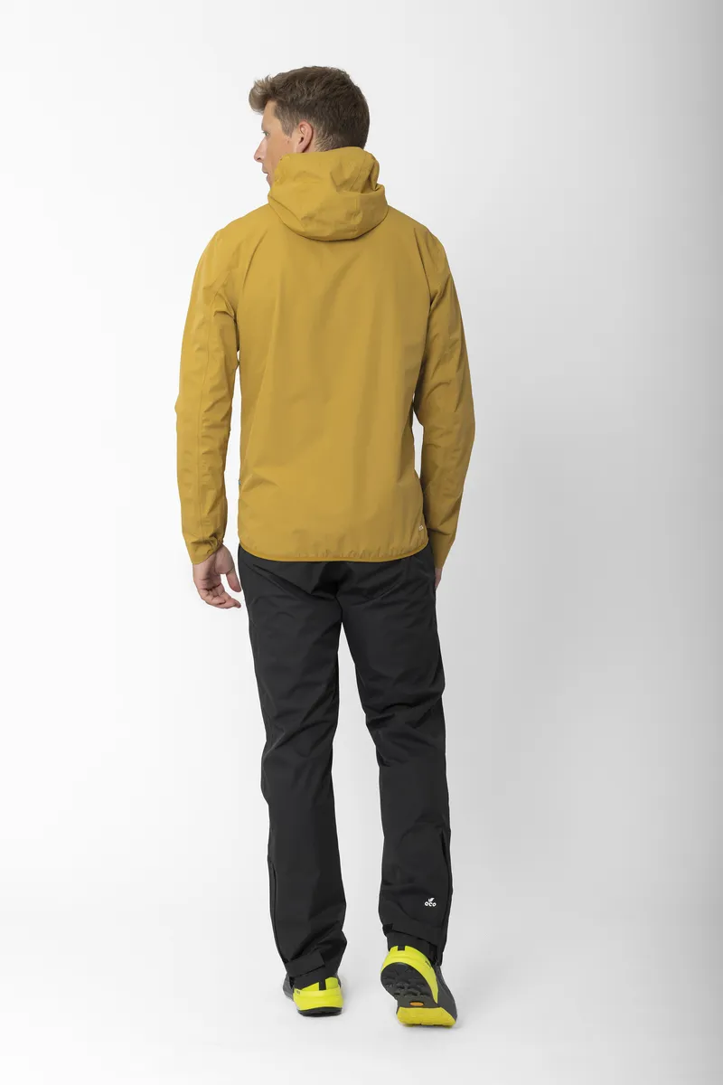 Jacks 2,5-lagersjacka är tillverkad av delvis återvunnen polyester och erbjuder miljömedveten prestanda utan att kompromissa med funktionaliteten. Den är utformad för att tåla väder och vind och har tejpade sömmar samt en vindtät konstruktion. Jackan har dessutom en vattenpelare på 15 000 mm och en andningsförmåga på 15 000 g/m²/24h, vilket garanterar att du håller dig torr och bekväm under dina utomhusaktiviteter. Dessutom ger laserskurna ventilationshål i ärmhålen effektiv temperaturreglering, medan det stretchiga tyget möjliggör obegränsad rörelsefrihet. Jackan har två sidfickor för praktisk förvaring, och kantbandet i nederkanten ger en tättsittande passform. Jacks-jackan är behandlad med ett PFC-fritt, hållbart vattenavvisande medel och är både miljövänlig och mycket funktionell, vilket gör den till ett utmärkt val för oförutsägbara väderförhållanden.