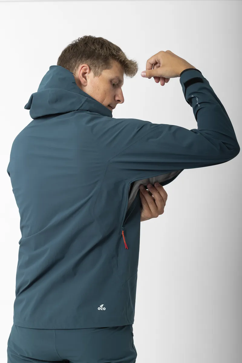 Jackan Nikkala i 2,8-lagersutförande är en teknisk skaljacka utformad för krävande väderförhållanden och aktiv användning. Konstruktionen i 2,8 lager av ripstop-tyg med matt yta förenar slitstyrka med en ren och modern design. Den är tillverkad av 100 % polyester med T8-garn och erbjuder pålitlig prestanda utan att kompromissa med komforten. Jackan är utrustad med Tritech 15K/15K och ger ett vattentätt skydd upp till 15 000 mm och en andningsförmåga på 15 000 g/m²/24h. Heltejpade sömmar, vattentäta dragkedjor, vindtätt tyg och stretchegenskaper säkerställer pålitligt skydd och rörelsefrihet under föränderliga förhållanden. Ventilationsdragkedjor gör att du enkelt kan reglera kroppstemperaturen under aktiviteter med hög intensitet. Jackan har två bröstfickor och två innerfickor i mesh för säker förvaring. Den justerbara dragskon i nederkanten och huven ger en personlig passform. Behandlad med PFC-fri DWR-behandling för vattenavvisande egenskaper med lägre miljöpåverkan.