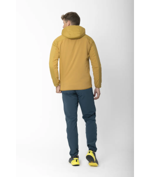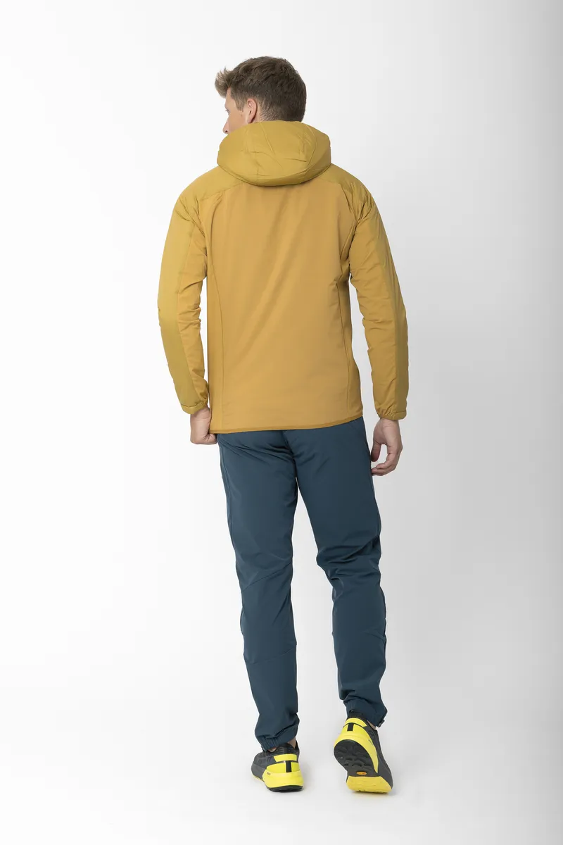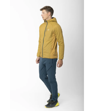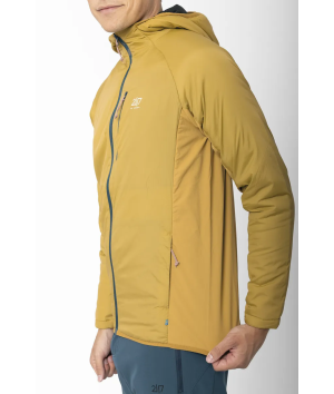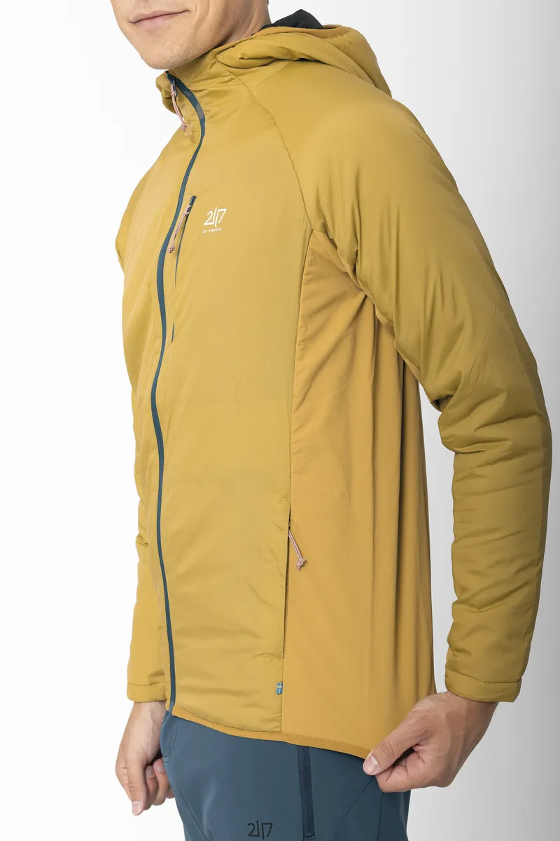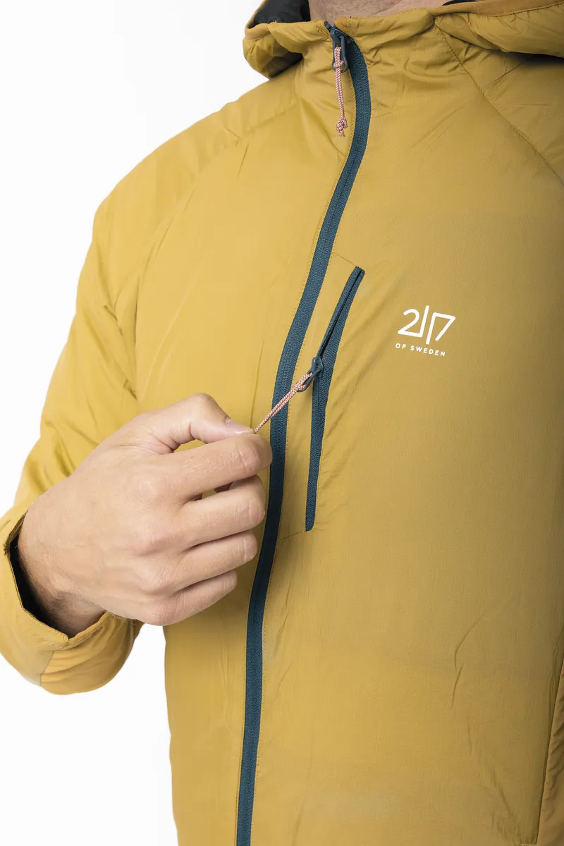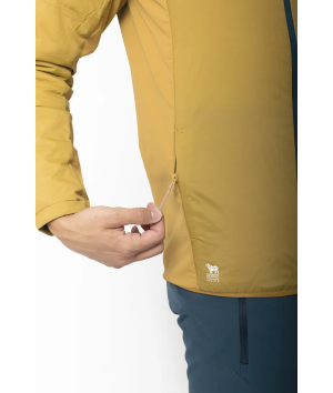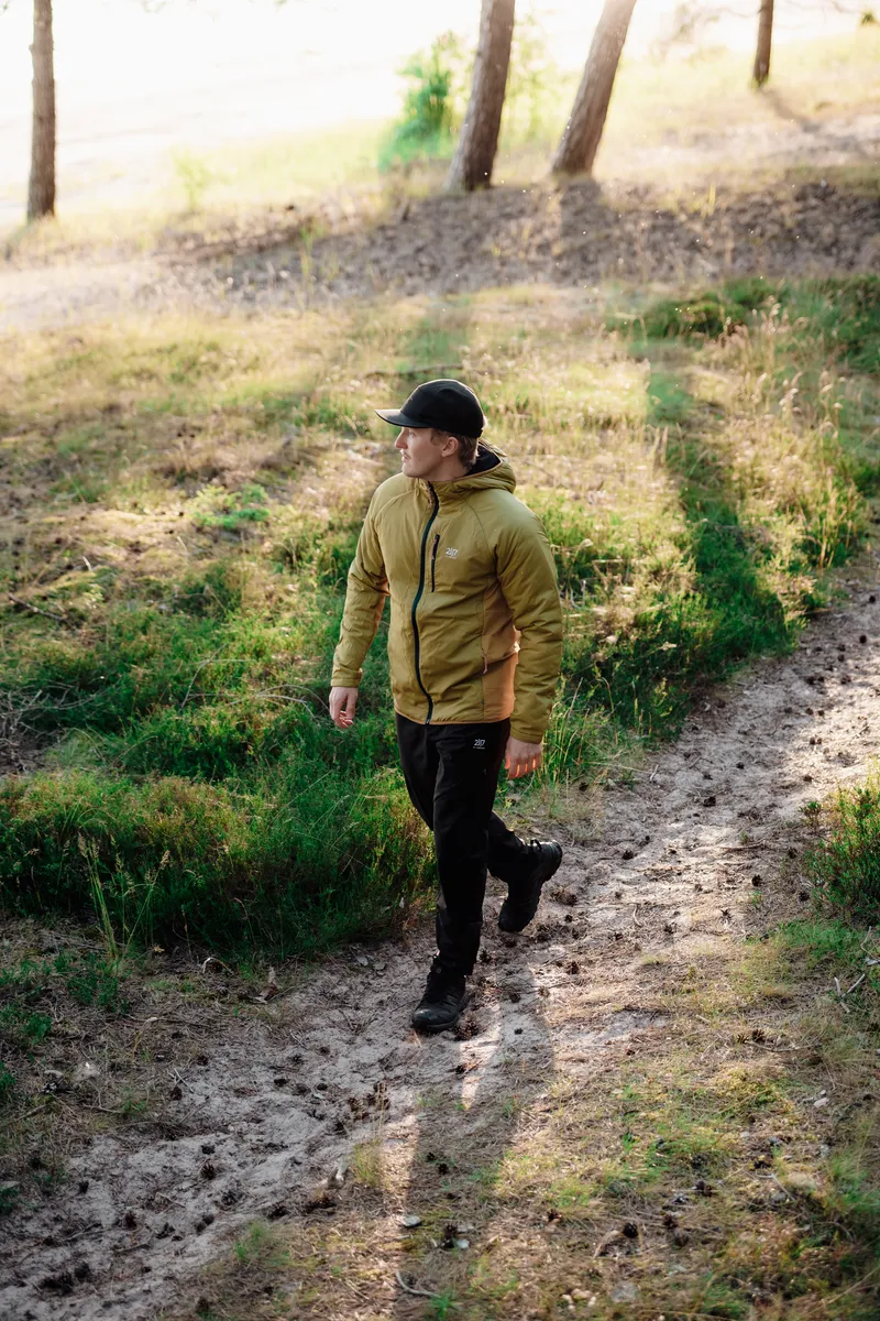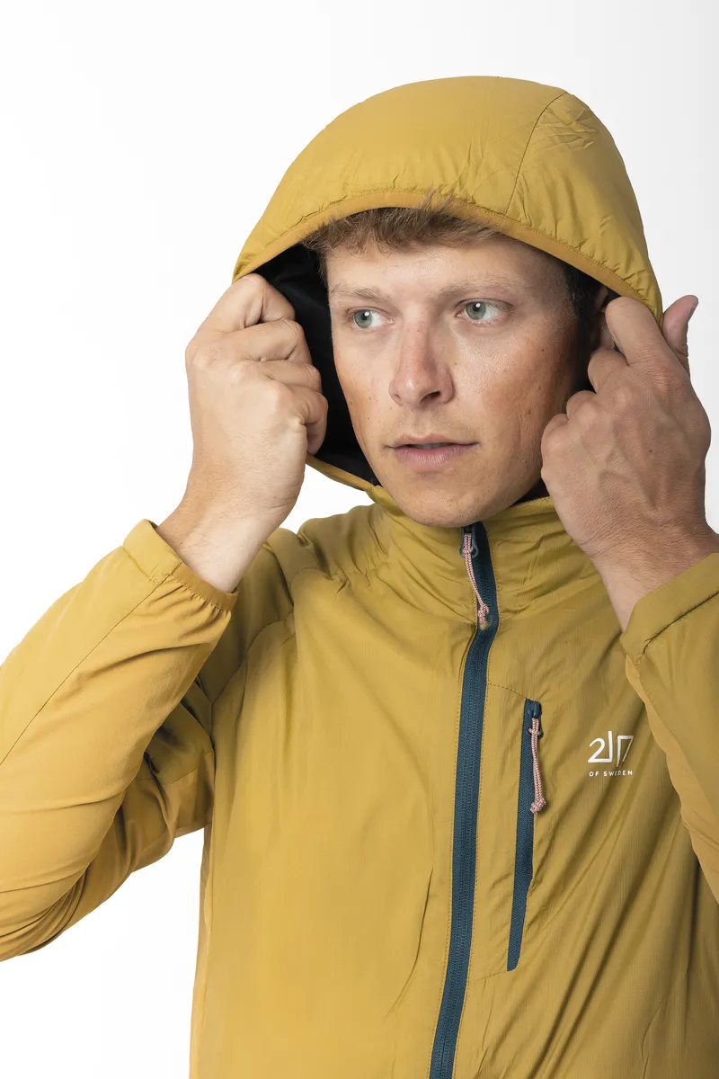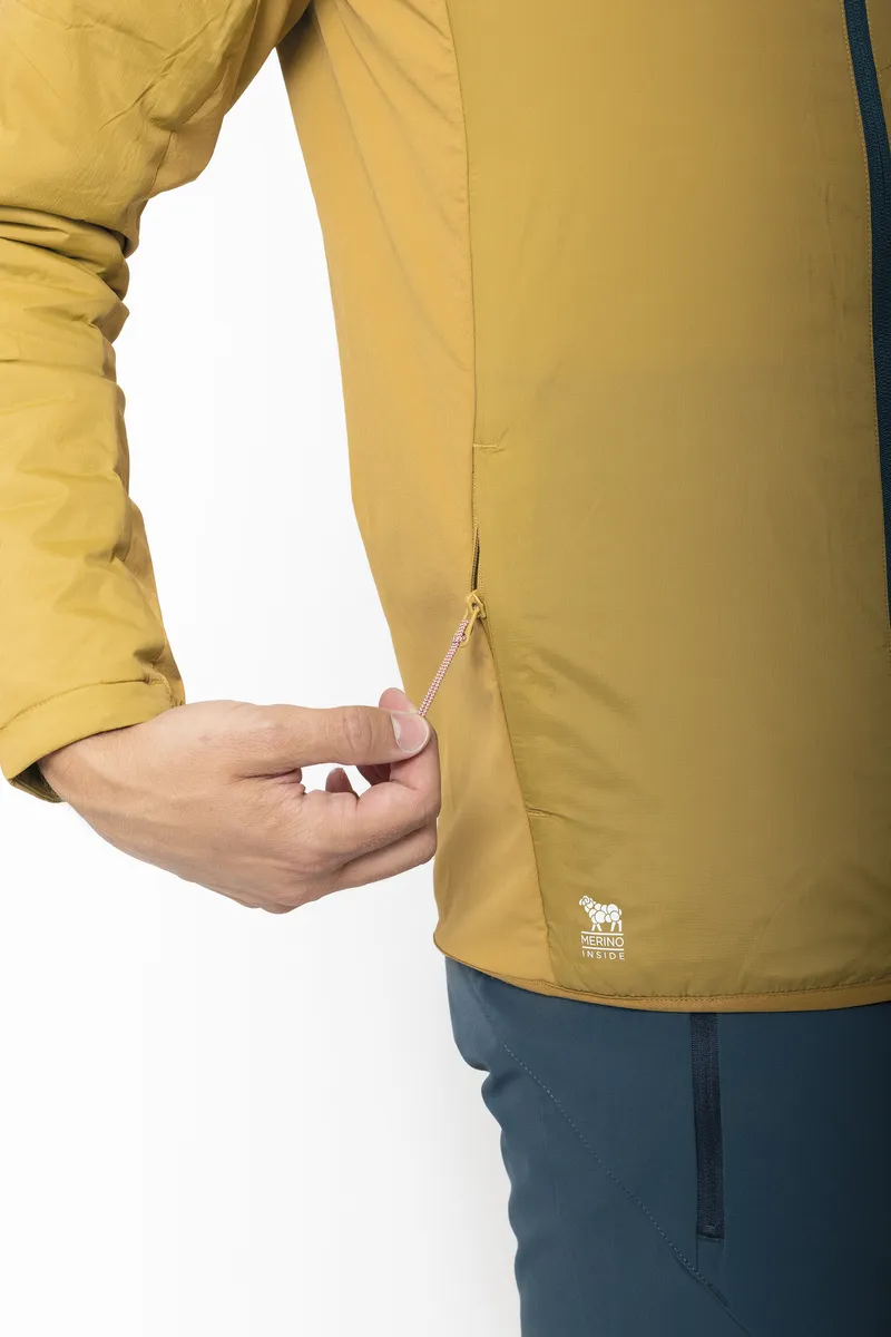 Kengis är ett hybridplagg som kombinerar vindskydd, naturlig isolering och stretchkomfort. På så sätt ger den värme där du behöver det mest samtidigt som den är andningsbar och flexibel vid rörelse. Frampanelen består av ett slitstarkt ripstop-tyg i nylon med 40 g ALTO-ullfyllning, tillverkad av 30 % ull och 70 % återvunnen polyester, vilket ger naturlig och mer hållbar värme och vindskydd utan att ta onödigt mycket plats. Baksidan är tillverkad av en stretchig ullblandning som reglerar temperaturen och förbättrar andningsförmågan, vilket gör Kengis idealisk för aktiviteter. Strategisk placering av tyget säkerställer rörelsefrihet: stretchiga nylonpaneler på sidorna anpassar sig efter rörelserna, medan baksidan i ull förbättrar komforten under långa dagar utomhus. Jackan har en bröstficka och två sidfickor för förvaring av nödvändiga saker, samt en snygg kant nedtill för en tät passform. Kengis är behandlad med en PFC-fri DWR-behandling och balanserar prestanda och hållbarhet, vilket ger en funktionell och miljömedveten lösning för lager-på-lager-klädsel i svalt vår- och sommarväder.