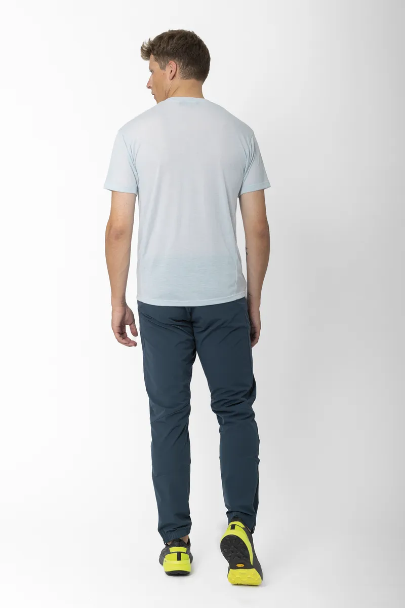 Almo Merino T-shirt är designad för aktiva kläder och kombinerar prestanda och komfort i en lättviktsblandning av 15% merinoull och 85% återvunnen polyester. Det mjuka merinotyget reglerar temperaturen på ett naturligt sätt, medan den återvunna polyestern ger stretch och hållbarhet, vilket gör den perfekt för en mängd olika aktiviteter. Med snabbtorkande och lukthämmande egenskaper ser den här T-shirten till att du håller dig fräsch och bekväm även under de mest intensiva träningspassen. Den är lätt att tvätta av och på, vilket gör den enkel att underhålla, medan det stretchiga, andningsbara tyget följer med dig och ger den perfekta balansen mellan komfort och funktionalitet för aktiva aktiviteter.
