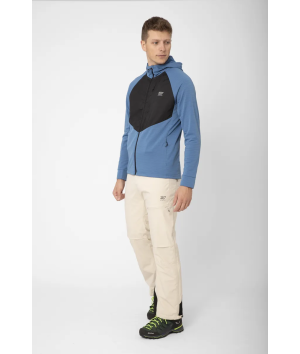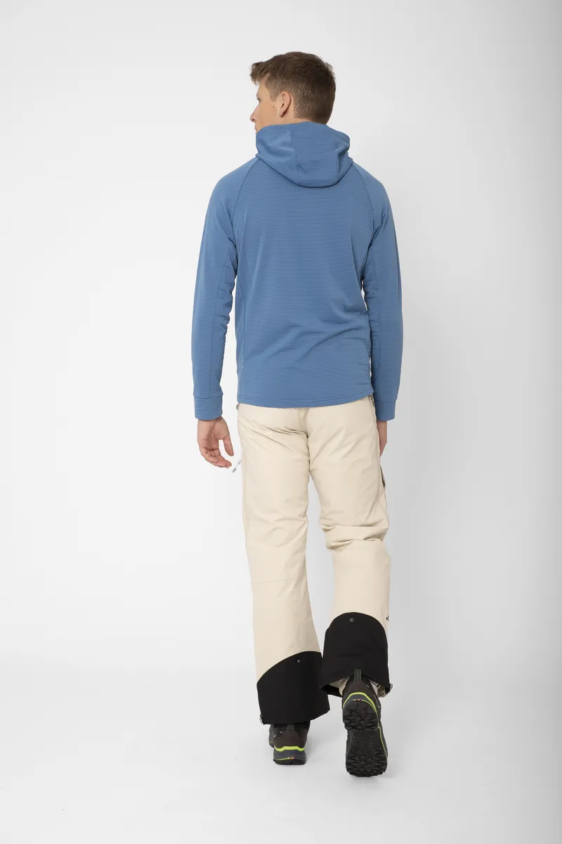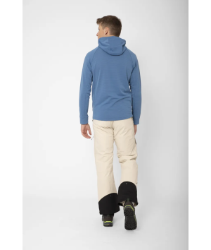 -fleece, 180 g/m². 97 % polyester + 3 % elastan (50 % återvunnet). Bröstparti: 400T polyester med ripstop