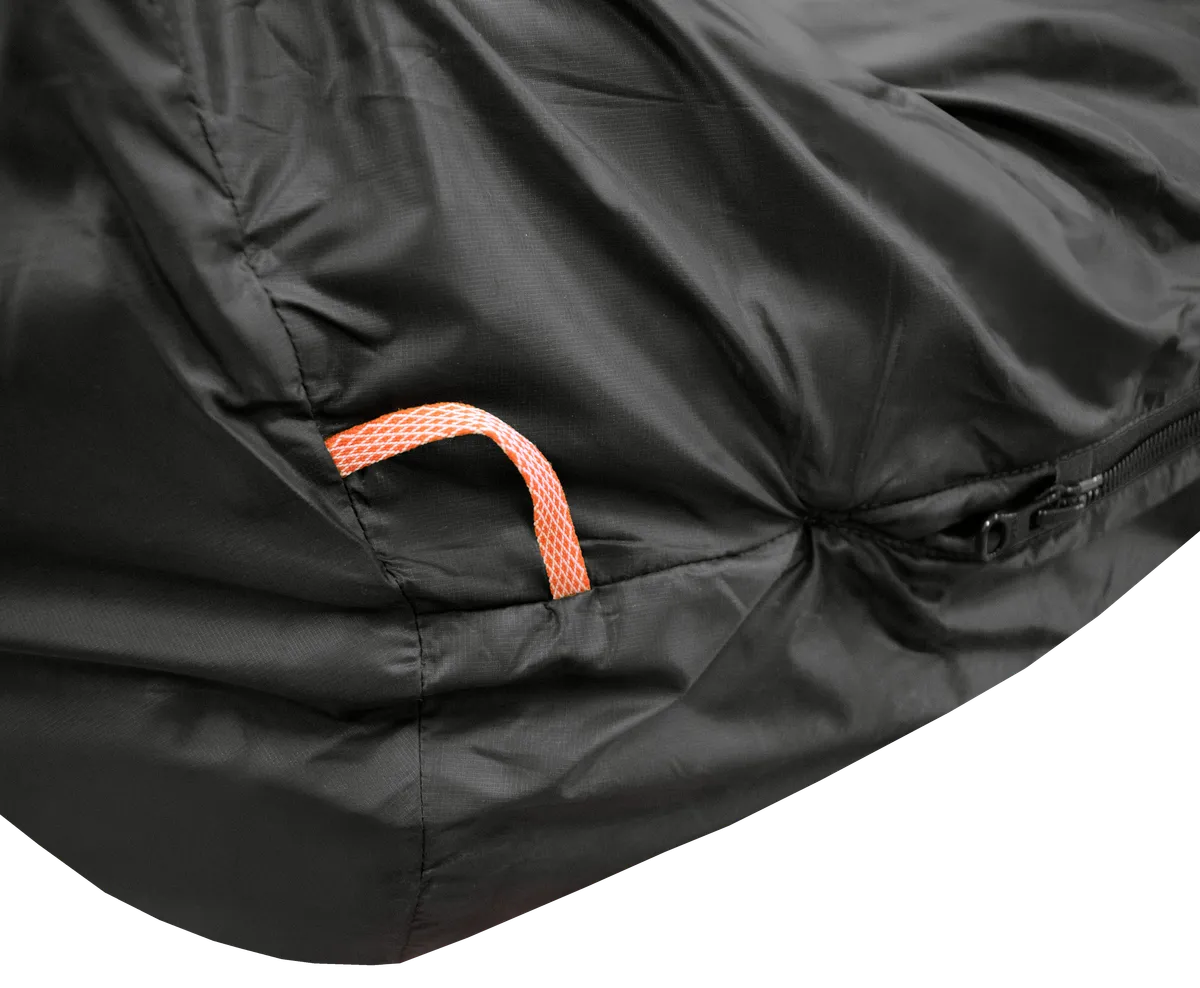Praktiska detaljer som en justerbar dragkrage, ett lättåtkomligt tvåvägsdragkedja och öglor i botten för ventilation och förvaring kompletterar denna smarta, miljömedvetna sovsäck.