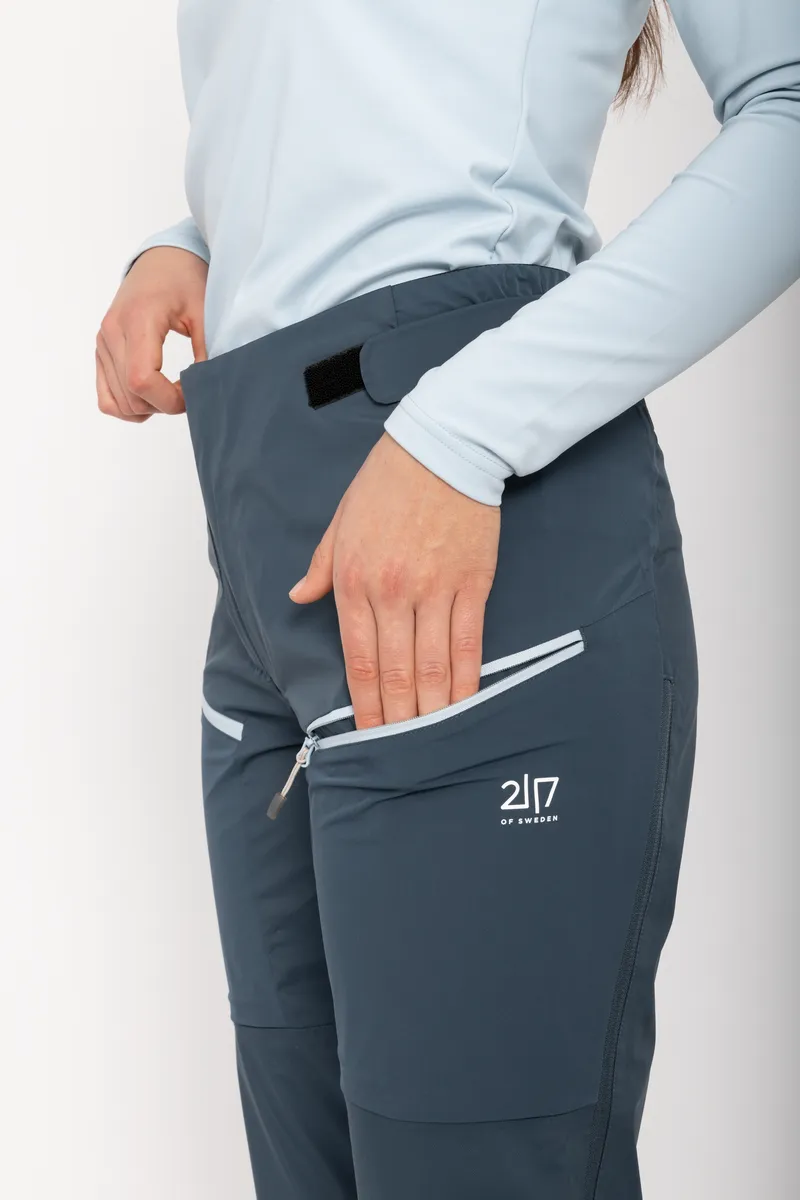 Skuppe softshell ski touring byxor är designade för krävande utomhusäventyr och erbjuder exceptionell flexibilitet och skydd. Byxorna är tillverkade av 30D Nylon 66 med hög stretch och ger överlägsen rörlighet för aktiva rörelser, vilket gör dem till ett utmärkt val för turskidåkning. 15K/15K Tritech-membranet, i kombination med tejpade sömmar och en PFC-fri Durable Water Repellent-behandling, ger tillförlitlig vattentäthet, andningsförmåga och vindtätt skydd under varierande förhållanden. Bland de praktiska detaljerna finns två benfickor för enkel åtkomst till viktiga saker och ventilationsdragkedjor på sidorna som hjälper till att reglera kroppstemperaturen under högintensiva aktiviteter. Den justerbara midjan ger en säker och bekväm passform, medan förstärkta benslut och snölås håller snö och skräp borta. Skuppe softshellbyxor ger den perfekta balansen mellan stretch, väderskydd och funktionalitet för dina alpina äventyr.